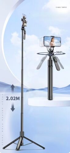 Built for stability and ease of use, this tripod works with most smartphones and features a secure phone holder that rotates to suit portrait or landscape orientation. The reliable design allows you to set up your phone for hands-free recording, online meetings, tutorials, or social media content creation. The included Bluetooth remote (on many models) lets you snap photos or start video recording from a distance without touching your phone.